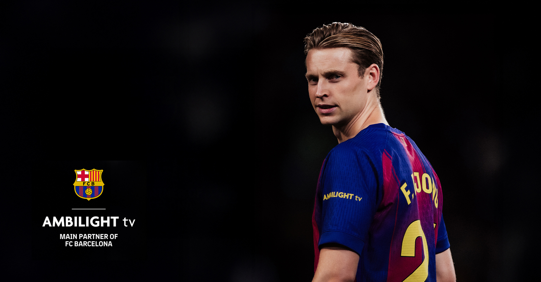 Philips Ambilight TV is sinds 2023 hoofdsponsor van FC Barcelona. Met deze samenwerking wil het merk de experience van het stadion naar de woonkamer brengen. De Ambilight technologie zorgt ervoor dat de kleuren van het scherm doorlopen op de muur achter de televisie. Daardoor voelt het alsof het veld de woonkamer binnenkomt en je nog meer opgaat in de wedstrijd. Vooral bij topwedstrijden van FC Barcelona of interlands waarin De Jong speelt, wordt die beleving versterkt.